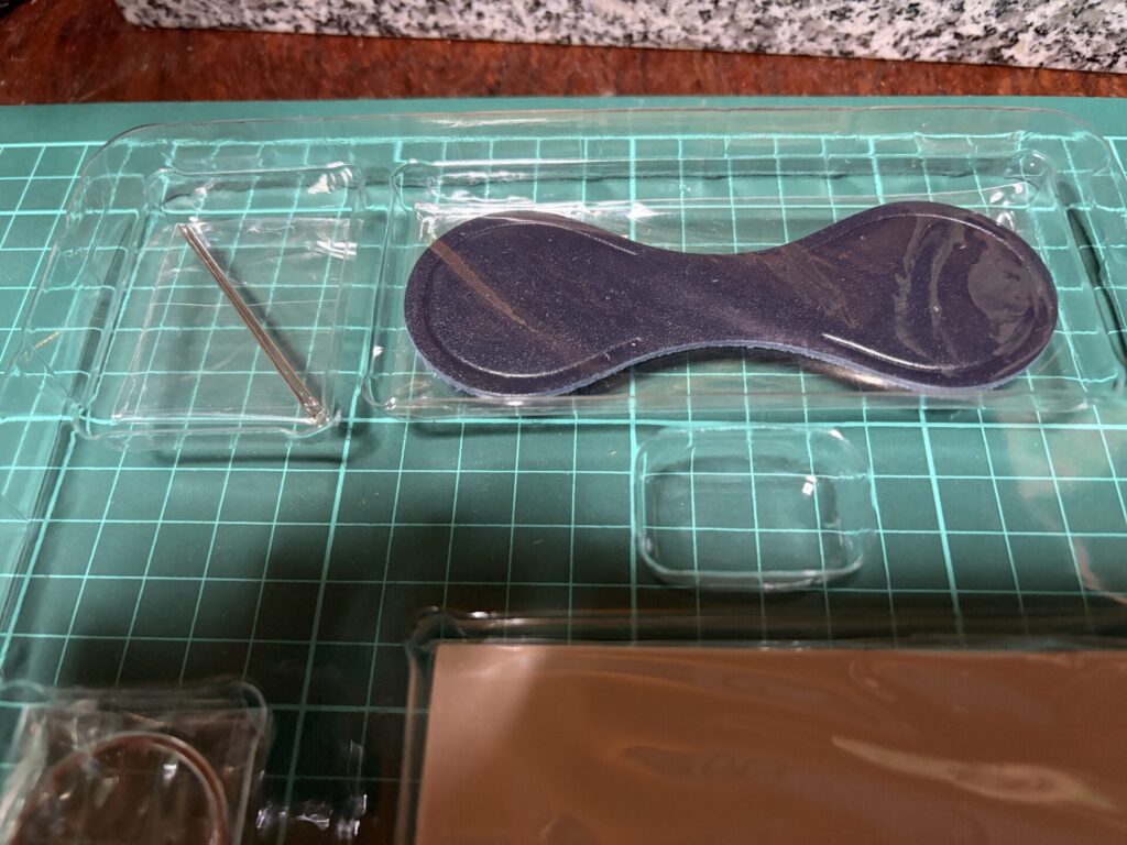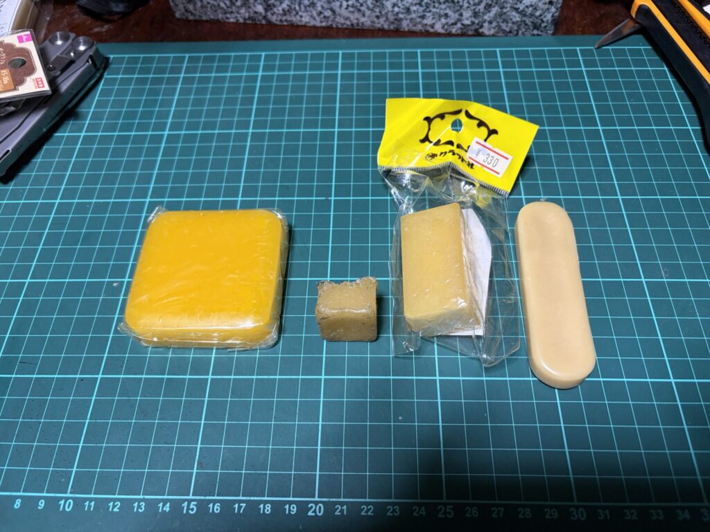 左から付属のロウ、私がいつも使っているロウ(使い古し)、そのロウの新品、コバワックスと色々並べてみましたが段違いにデカいです。正直、全作品作り終わっても余裕で余ると思います。実は糸のロウビキだけではなくコバの処理もこのワックスでやるつもりなのでしょうか?このロウだけでも500円以上すると思うのですがなかなか太っ腹ですね。