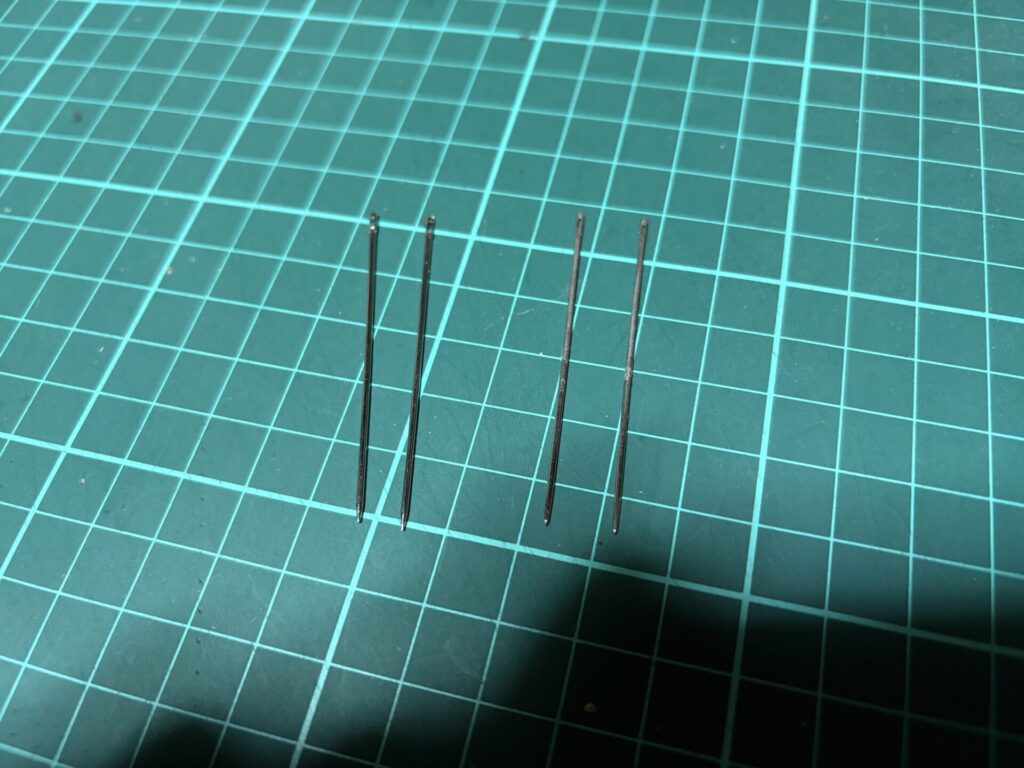針は2本付属しています。2本で縫っていくので1セット分ですね。比較に100均の針(右2本)を並べていますがまあ同レベルの針です。できれば不測の事態に備えて予備が欲しいところですが499円では2本が限界なのかもしれません。